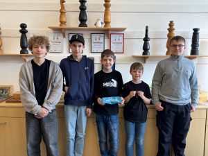Vier Siege aus sieben Matches war die hervorragende Ausbeute der U14-Jugend des Chess-Club Rheine bei den Verbandsmeisterschaften in Steinfurt. Platz vier hinter dem neuen Verbandsmeister TV Borken, dem SK Münster 32 und den Newcomern von Mattnetz Münster war der Lohn für Jonathan, Lutz, Jaron und Lucas.
